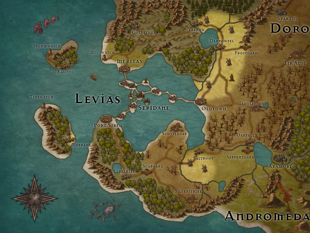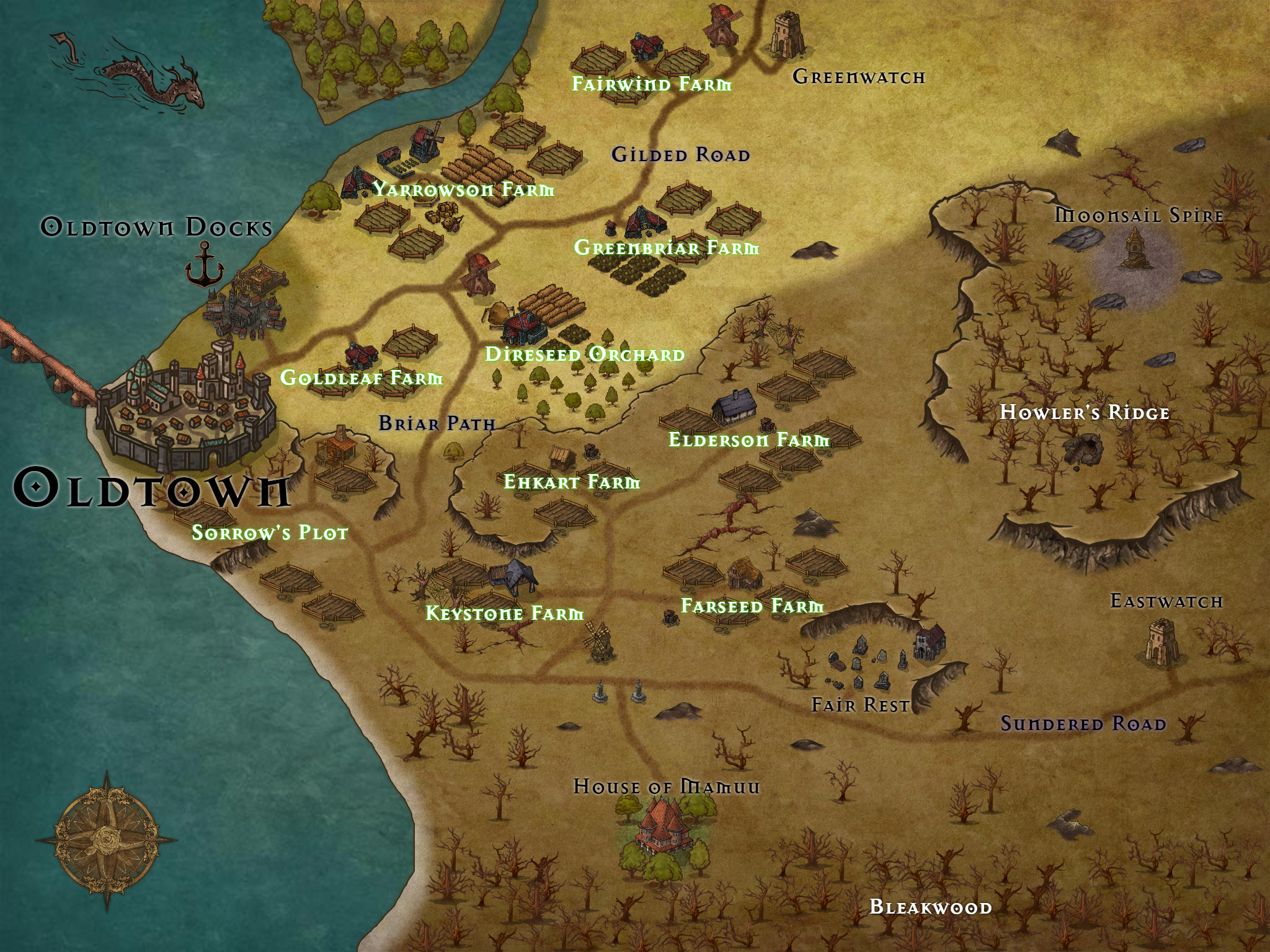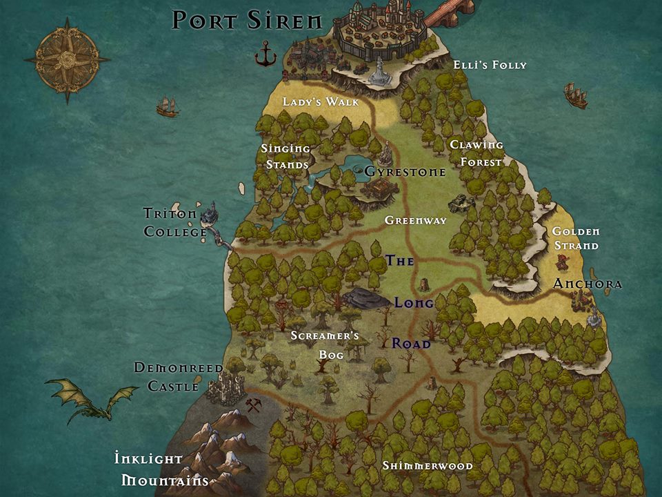 Port Siren is the largest port in the eight realms and is the main hub for all trade with the western kingdoms. A great deal of the commonwealth's lumber, rare metal, and precious stone resources pass through the city, but lately those supply lines have been cut. The lands to the south have become treacherous. Most settlments in the area have not been heard from in years. Some have heard rumors about survivors in Anchora and Lakeshire, but few dare leave the safety of Port Siren's lofty walls.